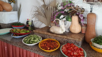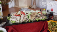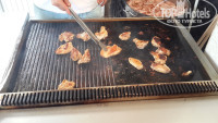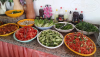 Ужин самый насыщенный, вкусный и всегда с присутствием куриного мяса. Раза 3 были фаршированные перцы, 1 раз шаурма, 2 раза курица гриль, 2-3 раза жареная рыба, не вкусная, мелкая, пересолена и костлявая. Арбуз (не всегда спелый и редко вкусный). Иногда печенье или бисквит в сладком сиропе - не вкусно. Но нагрузка на желудок не логичная, зачем обкармливать людей перед сном, а в обед и выбрать из мясного нечего (не все переносят соевые продукты). Бар с 10 до 22 бесплатный, сносный, но нами не востребованный.