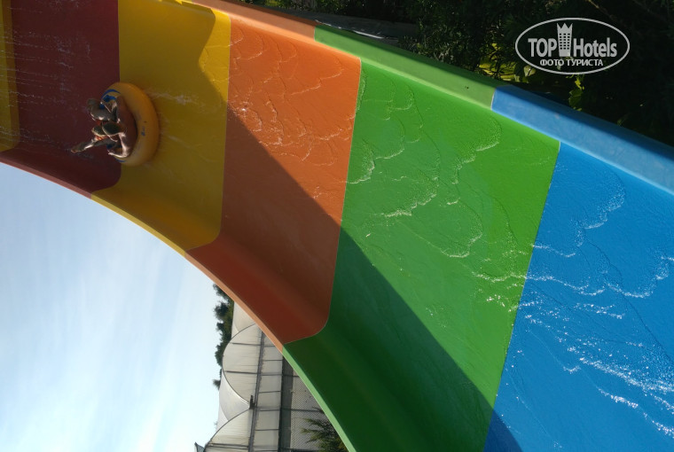 Отдыхали в отеле с 6 по 13 октября компанией из 5 человек, включая ребёнка. Внешний вид отеля неплохой, большая территория, большую часть которой составляет бассейн. У отеля свой аква-парк: 5 взрослых горок и одна детская. Аквапарк хороший, но, к сожалению, работает всего 4,5 часа в день. На горку с кругами имеется всего один круг, поэтому приходится долго ждать очереди, чтобы скатиться. Воду на горках отключают без всякого предупреждения, иногда в тот момент, когда едешь с горки)).