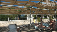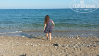 Пляж: вход в воду с пирса или в обуви. Вода чистая. Лежаков хватает.