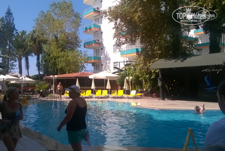 Здравствуйте, отдыхали в этом отеле со 2 по 9 октября компанией из 13 человек с детьми. В отель приехали часов в 10 утра, нас сразу встретил Хакан, приветливый и немного навязчивый...но это его работа))) Негатива к нему никакого нет, все рассказал, показал, конечно же, предложил хамам. Кто то из наших пошел, им понравилось. Потом пошли заселяться. Нам 2 номера сразу дали в корпусе А на 5ом этаже, остальные номера ровно в 14.00 на 3ем этаже в этом же корпусе. При этом принесли извинения за доставленные неудобства))) Парень с ресепшена донес нам всем чемоданы до номеров, все время улыбался, никаких чаевых не требовал. Номера нормальные. Да, не новая мебель, да, очень громко, пока проходит аннимация, т.к. окна выходят на главный бассейн, но вид потрясающий - на море. Сантехника работала нормально, вода горячая была всегда, кондер работал, не работал фен в номере. Убирали каждый день, когда висела табличка с просьбой об уборке. Полотенец было много, в том числе и для пола в ванной комнате, всегда докладывали мыло и туалетную бумагу.