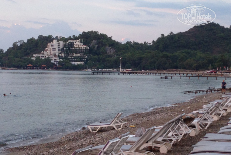 Пляж.. .Я бы оценила его на 4 с 2 минусами. Лежаки стоят как на берегу под навесами, так и на пирсе. 1 день мы заходили с пляжа, вход неудобный, камни, но это ничего, проплыв метра 2 на дне стоит острый булыжник, который не видно, но можно легко поранить ногу, что и случилось. Далее купались с пирса. Лежаков много, но занимаются они всегда рано утром, а потом целый день на них валяются полотенца. Мы в отпуске встаем рано и еще мы приглянулись бич-бою, он занимал нам 2 самых лучших лежака. С одной стороны, меня всегда бесят люди, которые займут на весь день лежаки и даже не появляются на море, а некоторые приходят в 10 утра и не знают, куда приткнуться. С другой стороны, у людей все оплачено, будьте добры вытащить на пляж дополнительные лежаки, чтобы всем- всем хватало и тем ,кто не появляется, и тем, кто спит до 10. Зачем омрачать людям отпуск?