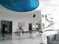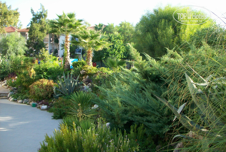 Территория отеля небольшая, но очень красивая, чистая, ухоженная. Холлы отеля - очень красивые, везде развешаны хорошие картины. На территории - разные красивые цветы и растения. Есть и пальмы и хвойные и кустарники. Розовое восьмиэтажное здание органично встроено в территорию.