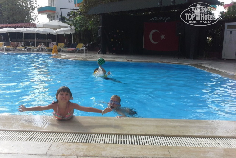 Отдыхали семьями, четверо взрослых и двое детей 6 лет.Сразу скажу, что больше всего измучало всех, это дорога от аэропорта до отеля,3,5 часа езды, после перелета ,это ужасно, но об этом нас предупредили сразу в турагенстве.По приезду в отель разместили нас в течении часа, пока нам подготавливали номера , нас накормили и провели экскурсию по отелю, показали рассказали, что и где находиться.Очень настойчиво предлагали посетить хамам, но когда мы отказались, любезность сразу же у человека куда то исчезла.Было не очень то приятно, но об этом мы быстро забыли.Номера нам дали хорошие(об этом мы сразу попросили)в корпусе С...Чистые, уютные все работало, отблаго дарили мы за номер 20 долларами.Сразу же скажу про уборку , убирали каждый день, все чисто аккуратно, на постели всегда фигурки лебедей и т.д, детям очень нравилось, полотенца и постельное все менялось ,когда было нужно нам.Территория отеля чистая ухоженная , хоть и небольшая. Два бассейна детям в них очень нравилось, особенно в том где горка, лежаков на пляже и у бассейна всегда и всем хватало.Теперь о море, это то, зачем мы туда и ехали.МОРЕ чистое, теплое , идти до моря через подземный переход мин 2, очень удобно .Вход в море очень удобный, пляж мелкая галька, мы от нее в восторге, мне она понравилась даже больше песка (когда были в прошлый раз в др.отеле) ВХОД В МОРЕ пологий, ТОЖЕ из этой гальки.рядом с пляжем отеля находится городской пляж, к вечеру приходят купаться местные жители, но нас это абсолютно не напрягало.Были очень сильные волны несколько дней , и мы и дети купались всеравно , очень классно было.Про еду....еда супер очень большое разнообразие всего и всегда, и везде (у пляжа на море, у бассейнов тоже можно было перекусить) голодным в этом отеле точно никогда не будешь...курица , рыба каждый день , сладости, фрукты, мороженое ,всего перечислять не буду.Теперь про анимацию взрослую ,это единственное , что было на 3.нам было вечерами скучно.Зато для детей все супер есть детская комната в которой с ними занималась аниматор Саша ,большое ей спасибо, и вечерами у них были конкурсы танцы, вообщеМ детям скучать не приходилось.А у взрослых, с 10 часов шло немного конкурсов мин на 30, а потом просто тихо играла музыка мин 15 и все ,расходились спать, молодежи будет скучно точно, хотя потом можно было поехать на дискотеку...Вообщем отель по анимации для спокойного семейного отдыха.Еще очень понравилось, что отель в центре города , где много неплохих магазинчиков, вечерами гуляли по городу и магазинам, купили много хороших качественных вещей.И в заключении --хороший отель ,твердая четверка