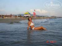 Пляж - галечный, с каменными плитами. Можно сходить на пляж соседнего отеля (вправо) , искупаться с пирса. Рядом с пляжем была какая-то сточная труба, по которой во время дождя грязная вода стекала прямо в море.
