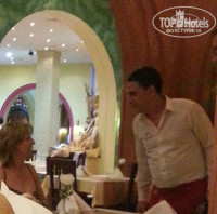 Ну а, на последок, хотела рассказать об основном ресторане. Это то, что просто испортило весь отдых. Во первых, ресторан просто не справляется с количеством отдыхающих, в последние дни отдыха впускали по очереди. Помещение плохо проветриваемого, не работают кондиционеры, кондиционер работал только в одном зале у главного входа, очень очень шумно. Стены, мебель, столы, все обшарпано, стулья страшно садится очень грязные, посуда старая со сколами, столовые приборы матового цвета от старости, нет бумажных салфеток (выделяется одна салфетка на человека), зубочистки надо еще поискать. Самое обидное отношения официантов к русским, они принципиально не подходят. Официанты бронируют столы за чаевые, для лучшего посетителя, ставя на стол стакан сока, бутылку воду, потом когда им сделали замечания и кепки и очки. Такие столы могли простоять более 40 минут, пока покушаем они все стоят, официант, увидев денежного отдыхающего просто летел к нему, усадив за забронированный столик и не отходил, облизывал просто, не приятно смотреть. Что касается еды можно было кушать овощи гриль и мясо, ассортимент мясных блюд скуден, ребенок ел только картошку фри, соки которые там не понятно с какими красителями, на утро рот и язык желтый ужас. Фруктов нет, яблоки резанные, иногда груши, мандарины и апельсины зелёные, если появлялись бананы просто улетали, там так не разу и не досталось ни яблока ни банана. А, что говорить о везде летающих птицах, о помете, извините, на столе. На завтрак в ресторане один повар готовит омлет на всех отдыхающих представьте на весь отель. Отстояв очередь взяли омлет, пока отошли от стола, птицы им хорошо позавтракали, пришлось идти за новой порцией. Оставляли ребенка за столом, что бы сражалась и отгоняла этих птиц. Короче основной ресторан просто ужас. Весь отдых и был испорчен, а главное от официантов, я не скажу, что все плохие, не хочу обобщать. Но в основном ресторане за весь отдых ни разу ни кто не предложил налить чая, кофе, вина - полнейший игнор. Вот еще, уборка посуды сидите за столом, а рядом стоит тележка, и выбрасывают отходы складывают тарелки бросают приборы очень способствует аппетиту.