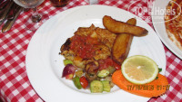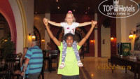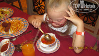 5 Питание. Вот здесь нюанс -- островато все -таки для нашего славянского народа! Народу полно, да очереди были, но всегда аниматоры проводят за освободившийся столик. Мы всегда ходили к открытию, никогда проблем с очередями не было. голодными не были. Очень вкусная и разнообразная выпечка. Кто то писал, что фруктов целых нет -- брехня! К открытию всегда что -нибудь выкладывают. Всегда брали целые яблоки,бананы,груши, апельсины, мандарины, гранаты. Да, ассортимент маленький, но каждый день что=нибудь новенькое кладут. В аля-карт ходили штук в 5 . Везде обслуживание на уровне. Немного не понравился бедуинский. А так во всех все вкусно! С выпивкой проблем тоже не возникало - полно баров. Вкусное почти безалкогольное пиво и приличный джин -тоник. Крепкое не пробовал -- говорят гадость! Коктейли в лоби вечером тоже вкусные и разноцветные. 2 суток ребенок поносил и рвало . В местой аптеке купили 2 флакона волшебной амброзии по 10 долларов за штуку. Одна от поноса, вторая от рвоты. Через сутки проблема исчезла.