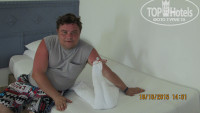 2 Номера в корпусе. У нас стандарт -- 3 кровати, приличный балкон. все работает. На электричестве экономят. Днем частенько вырубается силовая часть в номере(кондиционер) Уборка каждый день, смена белья и пополнение напитками(сладкой газировкой) 1 раз в неделю. Научили жену крутить лебедей. По сравнению с корпусами ближе к морю, у нас там можно было в футбол играть. Очень просторно было. По поводу насекомых: в номере их нет, а вот на площадке корпуса были и муравьи и ящерки.. Просто не оставляйте открытыми балкон и окна, так как вечером вся эта живность ползет на свет. Телевизор большой (на фото видно) Я накачал в тел на SD карту мультиков, там сзади есть USB вход, цеплял его как диск и ребенок вечером смотрел мультики, а мы в обед,когда она спала, смотрели наши любимые фильмы.