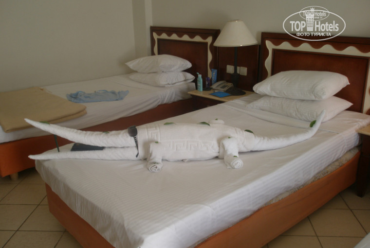 Но это так сказать предыстория, хочу рассказать про посещение 2013 г. с 30 мая по 13 июня, итого 15 дней. Ездили мы в отель Конкорд Спорт, это третье посещение этого отеля, первый раз - май 2010, затем май-2011, и вот июнь 2013. Перелет Колавиа, я согласна со всеми негативными отзывами об этой авиакомпании, хотя у нас задержали рейс на 1 час и туда и обратно. В отель приехали в 9,30, туристов около 40 человек, автобус полный и только сюда. Расселение в 11,00, браслеты тоже. Мы с подругами решили попросить в Лобби - баре воды. Подходим к бару, видим старшего менеджера, зовут Хешеб, он был в предыдущие наши посещения просто барменом. Мы не знаем, помнит ли он нас, все же 2 года прошло. Каково же наше удивление, когда, увидев нас, у него не просто улыбка, но улыбка на все 36 зубов, и, « вы снова приехали, почему долго не были», объятия поцелуи и прочее. «Я помню, ты пила ром» тут же появилась вода со льдом, ром, и все это и без браслетов, и без ограничений. В это время слышу свою фамилию, меня разыскивает барышня с рецепшен, оказывается, поскольку это не первое посещение отеля, мы ВИП гости, сразу надели браслетики, выдали ключи от номера. За полчаса мы успели выпить, оформиться и уже в номере. Приятно, черт возьми! Да, еще вечером тарелка фруктов в номер. Отдых как начался с приятных моментов, так и продолжился очень позитивно и весело. Надо сказать, что барышни мы далеко «забальзаковского возраста», но активны, позволяем втянуть себя во всякие игры, зарядки т.п., а дискотеки – это обязательно каждый день. Себя мы называем «старушки-веселушки». Кстати аниматоры из оставшихся Оля, Лучано, Лучия, нас узнали тоже, и с разговоров типа: «Сегодня пляжная вечеринка (дискотека), без вас не начинаем», начиналось наше утро на пляже.