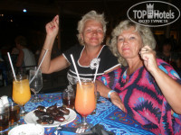 Про обеды: читала в отзывах, что нет свободных мест в ресторане, не хватает еды. Сложилось впечатление, что мы были в разных отелях. Да, в 12,45 уже очередь в ресторан, народ готов ворваться (и врывается) до начала обеда. Фу, как не красиво смотреть, когда их выпроводят обратно, позор на мои седины, мы соотечественники, мне стыдно. Речь ведь не идет о детях, детей кормят с клубом Тукан чуть раньше, взрослые люди, бегом, бегом, лишь бы раньше всех. Мы же на отдыхе, куда торопимся, ну приди через полчаса, думаю, с голоду не умрешь. И еду добавляют постоянно, всегда стоит повар в зале возле раздачи, смотрит, чего нет, добавляют тут же. Ну, или как-то устраивайся по иному, например нам всегда резервировали стол, знакомых официантов с времен первых посещений не было ни одного, но мы познакомились и подружились с новыми, Ахмед, Мурат, Юзеф, Мухаммед, Амир, спасибо им, они помогали нам отдыхать. На обед и ужин на нашем столике всегда стояли стаканы с водой и льдом, джусом, ромом, знали, что пьет каждая из нас и ставили на столик. Пустые стаканчики сразу меняли на полные. Вечером на открытой эстраде каждый день живая музыка, для нас столик и там был зарезервирован. Когда пел Ахмед, народу заметно больше, чем когда девочка пела. Кстати Ахмед нас тоже узнал, помнил, что мы были.