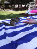 Чудесный отдых в Танжерине. Отдыхали в отеле с 16 по 23 октября 2015г. Заселение в номера в 13-00. Мы приехали в отель в 8 утра. Нас накормили завтраком. Чемоданы оставили на ресепшене, достали купальники. Переодеться можно в туалете около ресепшена. Туалет, к слову, очень чистый. Пошли знакомиться с территорией, освежились в бассейне.Территория великолепная. Много зелени. бурундучки почти ручные. Пляж отгорожен заборчиком. У калиток выхода на пляж дежурят охранники. На территорию отеля бич-боев не пускают, только когда выходишь на пляж они подходят знакомиться и предлагают покушать в кафе и экскурсии. Вобщем ходячая реклама. В номер заселили раньше в 11-30.