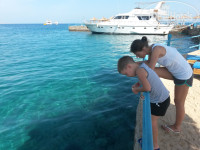 ПЛЯЖ свой, песчаный. Заход плавный. Прекрасное место для детей, без живности. Справа, от пляжа есть причал, где под водой куча рыб, которых также можно кормить сверху хлебом. В центре нашей бухты затоплена металлоконструкция, которая обросла кораллами. Маска, трубка, и красоты красного моря у Вас под носом. Мы видели: ската, много-много разных рыбок и даже черепаху! После обеда море не много мутное и с маской плавать уже на так интересно. Но купаться можно до ужина. Шезлонги но место найти можно всегда. Приходили всегда в 9 часов, лежали в первом ряду, но ближе к пирсу.