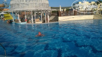До пляжа ходили пешком, в принципе не особо жарко и идти минут 15. На пляже всегда хватало шезлонгов, правда потом были большие заезды и после 9 часов приходилось место искать. Пляж нормальный, чистый, бар на пляже и персонал бара вежлив, никакого хамства и панибратства. Каждый день мороженное без ограничений. Море, как всегда в Египте, великолепное! Можно плавать с понтона а можно сидеть на попе у берега и смотреть, как вокруг плавают рыбы, буквально касаясь ног! Для любителей алкоголя-полный капец:) Все крепкие напитки не больше 20 градусов и ужасные на вкус. Запасайтесь дома или в дьютике. Дискотека во Фронте каждый день, но танцуют там 2-3 человека, включая диджея. Думаю, причина в платном баре. Бесплатные бары в обоих отелях до 24 часов. Анимация активная, с 10 утра музыка так долбит, что на пляже не поспишь. Постоянно какие-то конкурсы, танцы и игры, зарядки, не заскучаете!