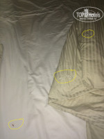 Наш номер 8111 был на первом этаже и это его единственный плюс. Пастельное белье в пятнах крови, рванное, непонятного цвета (фото прилагаю). Пол в номере уже был в песке при заезде. У уборщика в арсенале нет швабры с мокрой тряпкой, так что убрать песко в этом отеле не могут. Уборщик вечно надоедал своими шуточками при встрече в корридоре. В номере полумрак. Это очень напрягало. Мы насчитали всего около 30 лампочек, но их мощность как у ручного фонарика. Дверь на веранду и шторы очень тяжело открывались. Т.к. веранда глубокая, то свет до комнаты не доходит. Сантехника в желтых полосах. Краны нечищены. Туалетная бумага висела влажная.