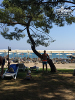В отеле, в принципе все понравилось! Разместили быстро, территория просто отличная, номер приличный! В номере сразу стоял детский манеж-кровать! Заход в море конечно не очень хороший, но за 18 дней привыкли) можно и с пирса в море заходить!
