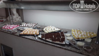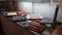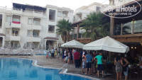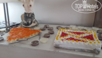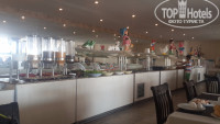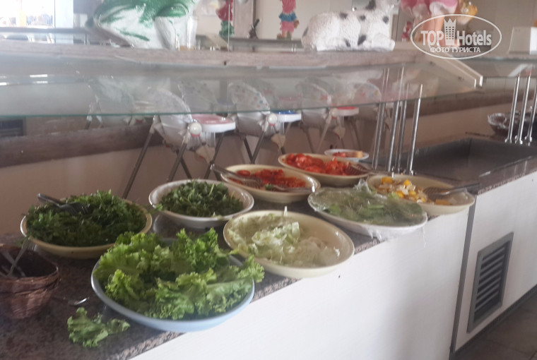 Еда была очень низкого качества, опишу подробно: там не было элементарно, ни заварного чая, ни кофе, ни компотов ни соков, а были растворимые низкого качества напитки: капучино, кофе, чай, юппи и вода из под крана. На завтрак мы с мужем еще находили себе что то поесть нормальных продуктов (яйца вареные, булочки, омлет, йогурт, который я нашла в заправках для салата) с обедом было уже сложнее, т.к. единственный суп, за все время отдыха, если его можно назвать супом, не представлял для нас интереса (это заварной легкий соус из муки и овощей) а вот с мясом были ооооооооооооооооооооооооооочень большие проблемы. Кроме курицы мы его не видели вообще, его просто нет в этом отеле. Есть неприятные на вкус сосиски и сардельки, которые даже местные голодные коты не ели, зато курицу они ели вместе с нами. Вечером была та же печальная картина. За весь отдых, нам один раз давали рыбу сгоревшую на гриле (не самый приятный ужин, где у тебя половина порции рыбы черная оттого, что она сгорела а остальная половина пропахлась гарью)Про фрукты это вообще можно молчать, и не верить что такое бывает. За все время в конце августа нам давали : зеленые яблоки и один раз виноград. т.е. ни арбузов, ни дыни ничего подобного не было ни разу.