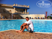 В итоге остановились на 5-ом этаже, вид на бассейн, ресторан на крыше и море!!! Сантехника в норме, но с душевой вода в трап не уходила до конца - уровень неверно выложен. Ремонт похоже тяп-ляп делают. Но номер был светлый, ухоженный. Постель чистая. В день давали по 1,5 литра бутылированной воды. Ею утоляли жажду и полоскали рот.