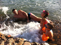 Пляж слабоват. Камни в воде острые. Купили в "ЖАСМИН-базар" коралки - в них и плюхались в воде.