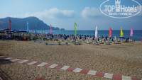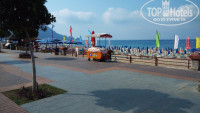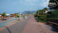 Главный и, возможно, единственный большой плюс отеля - расположение: до моря 2 минуты спокойным шагом, а там хороший пляж. Кстати, брали с собой пляжные коврики и зонт, поэтому на пляже ни за что не платили. Своей палатки на пляже отель не имеет. Совсем близко автобусная станция, рядом автобусные остановки - удобно для тех, кто сам готов передвигаться по окрестностям.
