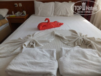 Номера бедные, выглядят как "совковые". Для сна подходят: постель чистая, меняют раз в несколько суток, но претензий не было, кондиционер работает. За чаевые накрутят из полотенец лебедей или ещё что-нибудь. На балконе можно за ночь высушить мокрые вещи. Наш балкон был на улицу, налево вид на пляж и море, направо - на горы, неплохой вариант.