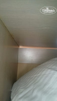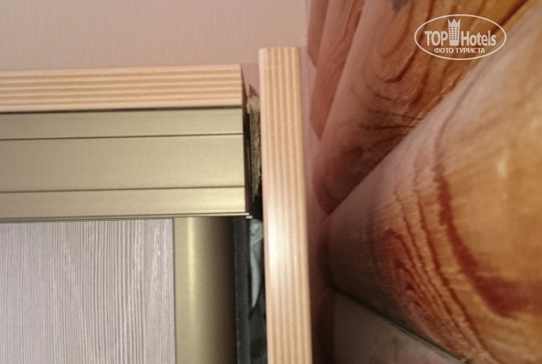 2. Фактическое состояние номера удручает. Если полы не покрыты ковролином, то отлично видны щели разных размеров между досками. Я далёк от мысли, что это дизайнерский замысел. Сантехника дешёвая и имеет свойство шататься при её использовании. При пользовании душевой кабиной (номер №3) вода запросто набиралась за 3 минуты (и не уходила минут 30-40) так, что кабиной было пользоваться невозможно. Дефект оказался неустранимым и нам поменяли номер на шестой. Те, кто потом заехал в него, так и жили с такой радостью. Полочки для разных принадлежностей шатались и имели уклон (в обоих номерах). Так что, прежде чем что-то туда ставить, надо убедиться в том, что они не имеют уклона и закреплены надёжно. В противном случае, могут быть проблемы. Про отхождение плинтусов от стены, проводах и трубах (номер №21), входящих прямо в стену, подробно писать не буду. Полы также могут иметь уклон. Так что удивляться не стоит. Мебель просто ужасная. Ещё чуть-чуть и развалится. Номер на 4 звезды (корпус «Ступени» имеет звёздность «4») никак не тянет.