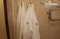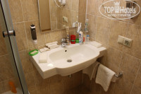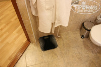Ванная средней величины, хотя за счет совершенно не функциональной пустой прихожей можно было спокойно ее увеличить. Биде нет. Гигиенического душа тоже нет. Что не очень комфортно. Унитаз, душевая кабина, раковина, напольные весы, два вафельных халата с логотипами отеля и тапочки - кстати, хорошего качества, совсем не "самолетные".. У раковины жидкое мыло, в душевой кабине - шампунь и гель для душа, все моющие средства хорошего качества. и рук не сушило, как кто-то писал. Также дается набор для чистки зубов - одноразовая щетка и паста, шапочка для душа, губка, одноразовый станок.