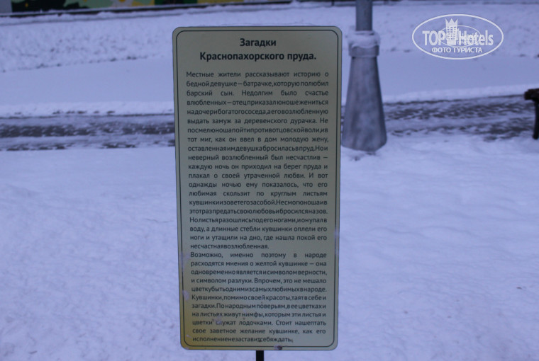 Территории практически нет. Пустырь вокруг с расчищенными дорожками, очень нужно побольше кустов, деревьев, зелени, крошечный замерзший пруд с табличкой с текстом без пробелов (экономили на картоне??) о кошмарной легенде с утопленницей, небольшая часть сохраненных огромных деревьев (там очень красиво), а по сути - просто прогулки вокруг здания. Но хороший каток с музыкой. Наряженная растущая большая ель - но сбоку от главного входа. Новогодних и Рождественских украшений на территории минимум. Кроме ели - еще олени из лампочек на клумбе (шарик между ними - сломался и не горел). Детская площадка как на улице, так и в корпусе.