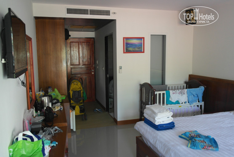 Кровать огромная (из двух кроватей). В номере была детская кроватка (в путевке было указано, что мы с маленьким ребенком), она очень облегчила наш отдых (дополнительно денег в отеле за неё не брали). Кроватка расположена так, что ветер от включенного кондиционера на неё не попадает.