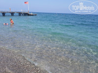 ПЛЯЖ: людей много, лежаки разбирают с утра очень быстро, но в 9-10 утра можно найти парочку лежаков, только если с разных мест их притащить, полотенца выдают в СПА, менять на сухие можно у бассейна. Если б люди с ночи не оставляли свои полотенца - свободных лежаков было бы больше (тем более бывало, что и люди сами не приходили, а полотенцем было занято). Песочек с маленькими камушками, вход достаточно пологий, каменистый, выход менее приятный))) Вода - изумительно прозрачная, теплая, бывали рыбки, иногда кусали, но это так быстро происходит, не успеешь понять, что кольнуло в ногу. Ровная гладь по утрам, после обеда маленькие волны. За весь период были пару раз ливни. На выходе есть душ с ледяной водой. Есть водный спорт, платно.
