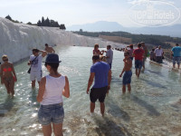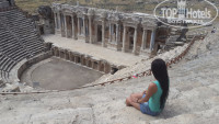 ЭКСКУРСИИ: в отеле гид Кристина (Пегас), как она мне не понравилась :) Те, кто брал экскурсии по 240-300$ она так улыбалась и стооолько рассказывала, а как мы спросили бесплатный трансфер в Кемер, глаза опустила, морда кислая, два слова сказала и воткнула в свой ноутбук. Но это была совсем неинтересная экскурсия по дорогим магазинам, но вечер убили (все дорого - и вещи, и даже магнитики). Хотели зайти в дешевую лавку рядом с магазином, гид не пустил, сказал, они не сотрудничают, если мы пойдём, он оставит нас в городе и добирайтесь сами как хотите :) с Пегасом ездили в Памуккале, очень там красиво. Обязательно пройдите к амфитеатру. СОВЕТ: в автобусе одевайтесь тепло, а в Памуккале идите без вещей, в купальнике, платье, и с фотиком - там жарко, а вещи оставить в раздевалках у купальни Клеопатры платно. Завтрак был ужасный в придорожней забегаловке, обед получше, но без напитков - берите с собой. Ну и посещение дорогущих магазинов ;)