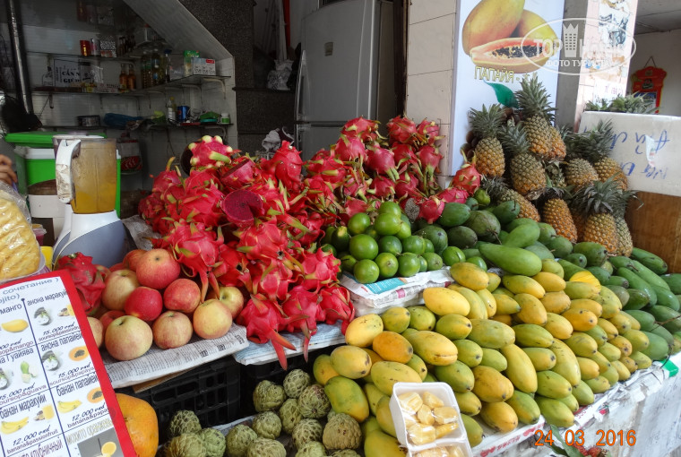 Фрукты на каждом шагу, но мы предпочитали покупать здесь: выходим из отеля направо, идем до перекрестка переходим дорогу и видим две большие точки, там же покупаем соки, очень вкусно (манго-папайя обалдеть).