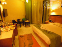 Отдыхали в этом отеле с мужем в апреле 2016г. Решение отдохнуть пришло к нам практически спонтанно. Купили тур за 2 недели до вылета. Располагали определённой не очень большой суммой денег и на шикарный отдых не рассчитывали. Уже после приобретения тура основательно почитали отзывы о данном отеле, и в душе понимали куда едем. Это касается отзывов плохих номерах, питании, обслуживании и пр. В общем были готовы к худшему. Летели с Борисполя, наш рейс задержали на 3,5часа. Какая-то поломка самолёта. Но всё починили, в салоне самолёта нам сразу же выдали по бутылочке (0,5л) воды и покормили горячими обедами (как раньше). Это, как компенсация за задержку рейса. В связи с задержкой рейса в отель мы прибыли уже ближе к полуночи. С нашего рейса в этот отель приехали человек 15-20. Мы заполнили карточки и нам сразу же предложили пройти в ресторан покушать. Не смотря на то что ресторан уже был закрыт, нас ждали. Еды было достаточно, чтобы каждый смог найти себе покушать. В конце ресторана, где сладости и фрукты, среди прочих фруктов мы увидели огромный разнос с клубникой - это была первая приятная неожиданность. Если клубника присутствовала и после закрытия ресторана, то значит не всё так плохо!!! Не спеша мы поужинали и пришли на ресепшен для поселения в номер. Вот от номера мы точно уж не ожидали ничего хорошего. Половина номеров с видом на стройку, помойку и пр. Каково же было наше удивление, что нас заселили в номер с отличным балконом, с видом на бассейн и боковым видом на море, на первом этаже ( по сути это второй этаж, поскольку первый этаж считается у них нулевым). В номере всё работало: фен (кстати почти новый), ТВ -плазма, холодильник, душ (душевая кабинка), все краны, и пр. Это было нашим вторым приятным удивлением. Номер конечно не новый, местами (в шкафу и немного на стене внизу комнаты) облущилась штукатурка. Но, люди, относитесь к этому проще. Этот отель входит в 3-5 самых дешевых отелей своей категории (4* с питанием АLL и первой береговой линией). Если собственник сделает ремонт отеля, то цена увеличится на несколько сотен долларов. При желании, можно доплатить около 40$ и переселиться в Сфинкс. Там номера получше. Вам и браслет другой оденут. Никаких других преимуществ Сфинкс не имеет. Сейчас в Египте большой кризис. Туристов очень мало. Территория Кинг Тут и Сфинкс общая. Все могут пользоваться всем. Ресторан основной для всех один (Клеопатра, возле ресепшена Кинга), там же и бар, тоже для всех. Ресторан и бар на пляже тоже один и тоже для всех (около Сфинкса). Ресторан а-ля карт закрыт, бар в бассейне (Сфинкс) тоже закрыт. Обусловлено небольшим количеством туристов. Питание: для отеля данной ценовой категории - шикарное. В избытке всего и всегда. Мясо - курица и говядина - всегда, помимо этого: нагетсы, котлетки мясо с овощами, люля-кебаб и пр. Рыба - всегда, а иногда и два вида. Всегда несколько видов риса, картофеля, макарон, овощей, свежие овощи, первое -один или два вида, в ресторане на пляже ежедневно среди прочего пицца и мороженое (правда не очень хорошего качества). И конечно же моё любимое - сладости и фрукты. Это настоящий рай для сладкоежек. Несколько видов тортиков, пирожных, муссов, желе и пр. Фрукты всегда 2-3 вида: были апельсины, мандарины, грейпфруты, финики, клубника, гуава. Дыня только порезанная в виде салата. Завтраки конечно не такие обильные, но голодными не
