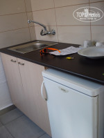 Кран с горячей и холодной водой перепутаны местами и мы думали, что у нас нет горячей воды. В номерах есть ку хня - холодильник, раковина, чашки и чайник. По телевизору 5 каналов на греческом и евроньюз. Маленькие гели для душа и шампунь дают по 1 штуке на человека и только один раз, то есть 5 мл геля для душа надо растянуть на неделю, по их мнению).