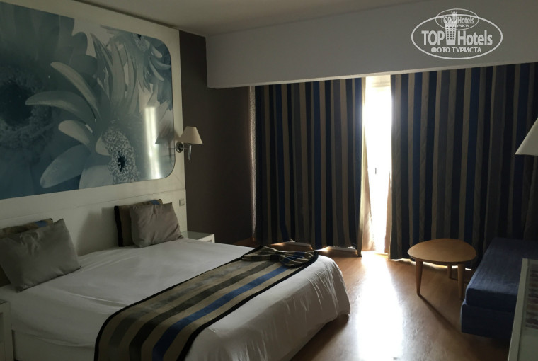 Бассейн работал закрытый-подогревался, открытый был 23С. В нем везде разная глубина-не маленький-можно поплавать. На бассейн где аквапарк-не добрались, нам хватало основного бассейна и моря! Море!!! И пляж!!! Это такая красота! Море прозрачное, голубое-глаз радуется. Заход медленный, пологий! Идеально для детишек! Пляж чистый, песочек как мука или крахмал-белый и хрустящий!!!
