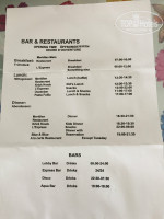 Бар у бассейна-работает КРУГЛОСУТОЧНО, все то же самое, только в многоразовых пластиковых стаканах и без коктейлей, только смесь алко+безалкогольных напитков. Так де там есть круглосуточная еда. Меню разделено на 3 часовых времени: 6-11-завтрак, типа яичница, сендвич и тд. 11-00 меню на весь день: пиццамаргарита, она же с тунцом, и она же с салями, бургеры с котлетой, итальянский, тунисский и Турецкий сендвич, 00-6 утра меню не изучено, но точно были хотдоги)