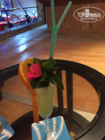 Бар в лобби с 10 до 24-пиво(нормальное), вино(белое, красное, розовое-очень достойное), джин(мужу нравился), виски(по мне отстой), водка(чистую не пили, в коктейлях норм) и буха-местный напиток, своеобразный, в коктейлях норм. Много безалкогольных напитков достойного качества. Так же чай и кофе из автомата, как в ресторане(американо, экспрессо, капучино, какао и тд) Все смеси алко+безалкогольных и так же там делают кучу коктейлей для дам) пина-колада, фруктовые коктейли, коктейли с натуральными соками, все оформляют красиво. Мы частенько оставляли бармену на чай, поэтому коктейли для нас были особо классными. Здесь все подают в стеклянной посуде, а в районе 17ч. давали солёный арахис-с пивком душевно вкусные)