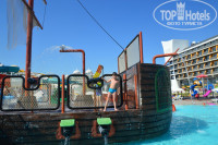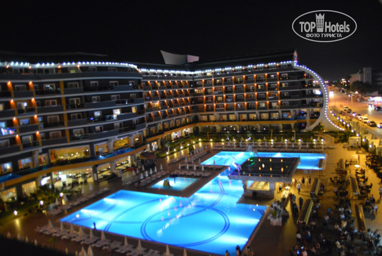 Отдыхали в Турции первый раз, долго выбирали отель, т..к. доллар зашкаливал, и наконец выбрали. Подруга с другом летели из одного города, мы с мужем и ребенком 6 лет из другого. Подруга заселялась в 21.00 и их заселили без проблем (правда дали номер, балкон которого выходил на другой отель, в котором анимация день и ночь и очень громко). мы прилетели 12 июня в 10 утра, номеров сказали, что нет, предложили багажную комнату, правда когда мы сказали, что у нас здесь друзья, любезно назвали их номер, одели браслеты и предложили номер сьют, двухэтажный (мы отказались). встретились с друзьями, позавтракали, сходили на море, пообедали и потом нас заселили на ту же сторону, что и друзей, только на 3 этаж. в 5 встретились с представителем тез тура. которая нам все гладко намазала, мы купили, т.к с ребенком и хоть какие-то гарантии. (си-парк, хамам, джипы). Все экскурсии понравились, не понравилось, только, что на джипах пытались содрать денег за каждый чих. В предпоследний день купили тур на пиратский корабль (на пляже) и дешевле и денег с нас не брали (за каждый стакан воды). Ночь нас конечно ожидала сказочная, как писала выше номер удачненький был. когда зашли в номер все отлично. когда пришли спать, кондиционер оказался нерабочим (а открыть балкон значит слушать все прелести дискотеки). муж пошел на ресепшн, за 60 долларов любезно согласились поменять номер, сторговались до 30. На ресепшене вроде все улыбаются, а свое все вытянут. Еще у подруги был день рождения, подошли к девушке по работе с персоналом, хорошо, хорошо, и в итоге еще несколько раз подходили и в итоге никто никакого презента не дал. На след день принесли тарелку фруктов (3 клубнички и страшные бананы). записывались в ресторане а-ля карте, уже не помню какие, в общем лучше просто на ужин сходили. Питание нам понравилось, бары тоже. Пляж был грязноват, ну это от самих людей и зависит (кто семечки от арбуза в песок закапывает) и на хорошем расстоянии, т.к. территория отеля маленькая как раз было, чтобы погулять. Очереди конечно были, ну это опять же все от людей, все были с голодного края. Официанты молодцы-чистота и порядок (часто билась посуда, так они тут как тут). Анимация-одна и та же и вяленькая, про детскую ничего не могу сказать сын ни разу не захотел сходить. Аквапарк достаточно больщой, бассейны чистые. Уборка на нашем этаже всегда отличная была, а у подруги за 14 дней мыли всего 2 раза (1 этаж). В общем претензия только в том, что на ресепшене пользуются своим положением. Поедим мы сюда еще раз или нет, навряд ли. Если только за очень хорошую скидку