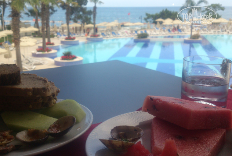 Прекрасный отель.Новый, ухоженный, кругом зелень,большая территория. Питание разнообразное,много фруктов,овощей. Приемлемые напитки.
