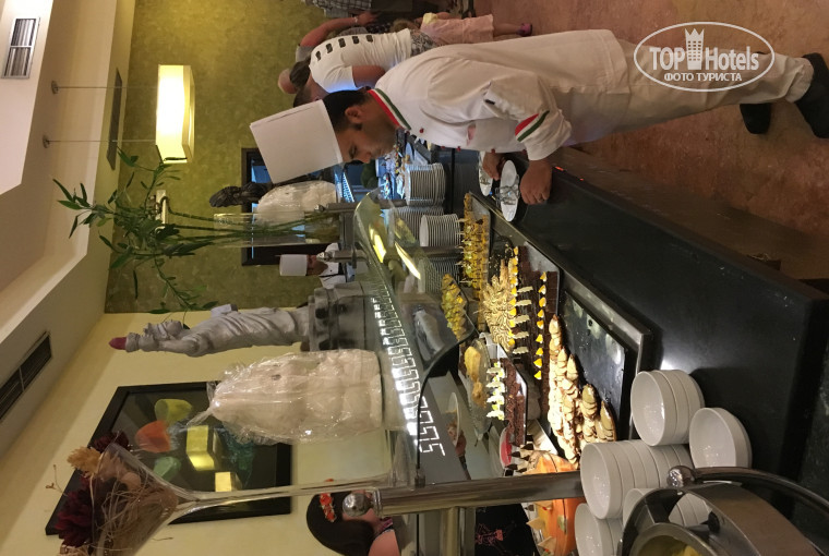 Питание. Это было БОЖЕСТВЕННО, не побоюсь этого слова. В Египте я уже себя чувствую практически как дома, но такого разнообразного и вкусного питания я не припомню. Морепродукты: осьминоги, моллюски в ракушках, крабы на гриле, морская рыба 1-3 вида, креветки и тд было практически каждый день, причем, чем меньше людей было в отеле, тем лучше кормили. Каждый день нас баловали новыми блюдами, даже на 14-й день пребывания в отеле нас приятно удивляли новыми вкусностями (фото прилагаю). Сладкий стол – вообще вне конкуренции!!! Такому ассортименту позавидует любая кондитерская фабрика. Официанты очень учтивые и аккуратные. А повар на гриле в последние дни (видно я ему примелькался) лично для меня готовил особые блюда.