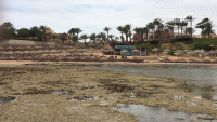 А вот с морем тут дела не очень (см. фото) Бухта ветреная (плюс в том, что не жарко), но море суровое. Практически всегда был красный флаг. Пришлось писать на ресепшене заявление, что ответственность за свою жизнь беру на себя, потому что плавать с пантона иначе не разрешали (при красном флаге). Течение очень сильное, при чем то оно есть, то его нету. Ну и отливы…. Вода бывало уходила на 10м, оголяя даже живые кораллы у самого моря, зрелище уникальное. Риф довольно красивый. Для тех, кто любит спокойно поплавать и насладится морем, отель не сильно подходит, хотя….. каждому свое. Зато классно для детей, большой песчаный вход в лагуну позволяет прекрасно плескаться в воде на глубине до 1-1,2м.