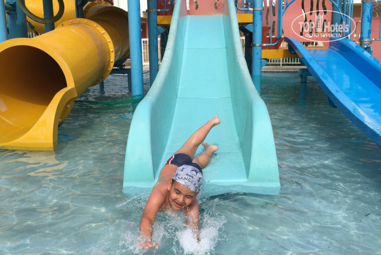 Ну ничего, сами исследовали территорию. Общее впечатление - бассейн везде))) Но это и здорово. Однако с лежаками у основной части бассейна, во второй половине дня возникали проблемы, поэтому мы с утра шли на море, после обеда направлялись на детские горки, а уже часа в 4-5 шли к основному бассейну, где уже было достаточное количество свободных мест.