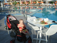 По питанию для деток:- выбирала отель специально с очень хорошим питанием, т.к.не перевела еще свою малявку на общий стол и планировала это начинать делать как раз в отеле. Хоть и писали, что можно попросить повара и он сварит и супчик какой надо и овощи блендером в нужном составе перемолет, но я обошлась вполне тем, что было представлено и так. Брала с собой смесь молочную и кашу (кипятком которую можно развести), но кашу за 2 недели раза 4 всего разводила. Утром есть молочная каша, доча ее ела, есть йогурты как классика, так и уже смешанные с фруктами и сами фрукты отдельно - бери и миксуй. Днем она ела супчики в которые можно было добавить мяско или макарошки или еще чего.. выбор был вполне. Ну а деток по старше вообще было чем кормить в большом ассортименте. В магазинчике на против отеля продается смесь НАН (если не забуду выложу фотки с ценами).