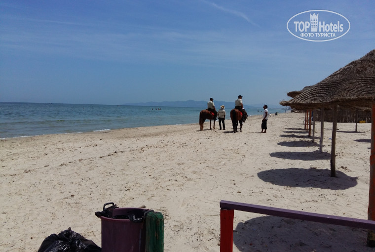 От аэропорта Монастир до отеля 3 часа ходу. Первое впечатление - пионерский лагерь. Номера на 2 звезды: маленькие трубчатые телевизоры, кондишен не работает ( хотя нам в июне не потребовался, вечером даже прохладно), холодильника нет, сейф за отдельную плату (сейф тоже не требуется: воровство не наблюдалось, использовали в качестве сейфа свой походный чемодан-сейф).Номер убирали каждый день. Вай фай на рецепшене и в баре, вечно вылетает. Персонал очень отзывчивый, аниматоры ваще молодцы. Еда очень понравилась. Все натуральное, без всяких добавок. Однако... Напрягали вечные очереди к омлету по утрам. И самое страшное ограниченное количество стаканчиков пива и вина в одни руки (почемуто по 2 стаканчика). Что опять создавало очередь к бару за халявной выпивкой. Хотя было заявлено и о финиковой водке как бесплатной она продвалась нашим туристам на ура целыми бутылками. Свой выход к морю и свой пляж порадовал. Везде охранники, а на пляже еще и с автоматами. Так как не очень люблю привязку к отелю очень часто ездили в Тунис. Благо из нашего городка ездит элекричка. Ехать примерно 50 минут в комфортабельной электричке с кондиционером. В городе все очень прилично и главное безопасно. Кстати и выпивку можно купить без проблем в госмагазинах General и Mono prix. Люди очень добродушные. Сами съездили на Карфаген и в музей Бардо.