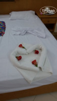 Встретили нас отлично, номер дали сразу, ну как подобает, нам не понравился) номер дали в главном корпусе на втором этаже с видом на сторонящееся здание, номер большой но темный, вроде чистый, но балкон из за ветра сильного был в песке, поэтому мы однозначно решили менять его. На рецепшен нам сказали подождать, и пока по завтракать (забыла сказать что прибыли мы в отель в 7:30 утра), но буквально через минут 15 нас позвали посмотреть другой номер, конечно с доплатой, но доплата просто мизерная (35$ за 15 дней) - а номер оказался просто великолепный, чистый, огромный двухкомнатный, с видом на шикарное море в корпусе А - я считаю что так как у нас был оплачен стандарт, это идеальная цена за такое количество ночей. В номере в одной комнате огромная двухспальная кровать, диван для отдыха и т.д., в другой одна полуторная и два дивана, но так как у нас две девочки то нужна была еще одна кровать, которую незамедлительно поставили.)))) так что с номером было определено и все великолепно.