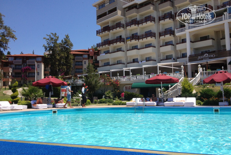 В связи со сложившейся кризисной ситуацией в Турции отель экономит на всём,даже не был открыт бар у бассейна,приходилось бегать в корпус на третий этаж за напитками.Вообще,нас объединили с Джустиано Клаб 4,а этим всё сказано.