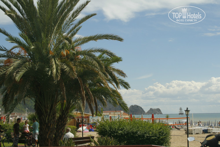 Отель отлично расположен - практически в центре города, но в непосредственной близости к пляжу, рекомендую его для таких же как и мы туристов - желающих самостоятельно передвигаться по городу. Возможностей для прогулок предостаточно - много магазинов в пешей доступности и прямо у корпуса отеля автобусная остановка. Кроме того, без проблем можно дойти до красивой крепости на горе и полазить по ее башням, заглянуть в недействующую судостроительную верфь(хоть и маленькая, но красиво и интересно),прогуляться по утопающим в зелени мощеным улицам старого города с домами под черепичными крышами, зайти в мечеть, полюбоваться с горы захватывающими видами на Аланию. В порту также очень неплохо прогуляться. В общем, для активных любопытных туристов - то, что надо!