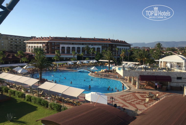 Только вернулись из Тюрана! Отдыхали с 6 по 16 июля - парой..Сразу хочу сказать,в Турции не первый раз,объездили её уже вдоль и поперек,я знаю,что такое и 3 звезды и много хороших 5 звездочных отелей! Но этот отель не соответствует ни 5 звездам,ни тех денег которые он стоит!!! 5 звезд можно отдать только территории-она действительно большая,красивая и ухоженная.Все остальное оставляет желать лучшего! Начну с самого начала,по приезду было много турков,так как это был праздник и отель был битком!Но простите,когда я делаю резервацию в своем тур агенстве Алида тур,они отсылают запрос на тот номер который мы проплачиваем! Мы по совету оператора выбрали номер в главном здании с видом на сад,вроде,как сказали,что зимой была реновация и номера там лучше и интернет везде ловит.Так вот:) Реновация состоит в том,что покрасили фасад зданий,а в остальном просто совок! Нашего номера не оказалось,все было занято..В замен нам предложили якобы номер получше,с 3 комнатами,обещали,что в нем лучше и комфортнее..Но...НЕТ ЖЕ! это был просто ужас,грязные стены,старая мебель с видом на улицу,где проезжая часть!И никакого интернета! Спустя 3 дня нам поменяли номер с видом на бассейн,но и в этом номере нет никакого ремонта и никакого вай фай!Больше похоже на дачный отдых...Наш номер был 1109...Второе самое отвратительное это еда...Через 2 дня вы поймете,что ничего нового вас не ждет, и вся эта похлебка напоминает какие то остатки от нормальной еды!Да,как пишут в остальных отзывах там действительно много еды,но есть ее невозможно!Она просто не вкусная в 90%! если мясо то либо сухое либо на вкус просто ужас..Котлеты из какого то фарша,которое мясом не назовешь..Салаты такое ощущение,что нарезали вчера,а поставили сегодня!Фруктов очень мало,дыня,арбуз,сливы,яблоки и испорченная черешня,приходилось стоять по пол часа и выбирать нормальные ягоды! Из сладкого можно есть только восточные сладости,все торты и пирожные фу! По поводу анимации,она есть...но они,как правило проводят зарядку и играют в волейбол- на этом все...Вечерние шоу ни о чем! Для маленьких детей может быть,но никак не для взрослых..Фотографы- 7 евро стоит одна фото,на обещания сделать скидку и записать вам диск не ведитесь! в цифровом формате вам отдадут фотки только если вы возьмете фоток на 150 евро минимум! В остальном,детей маленьких много,отель для тихого спокойного отдыха,неплохой аква парк,мини зоопарк и парк атракционов..Для маленьких детей отлично! На пляже работает спасатель Мурат-очень отзывчивый,добрый и порядочный.Всегда поможет и подскажет,как лучше..Даже чай нам приносил на пляж и воду:) Обязательно сьездийте в магазин кожи и мехов,их магазин находится на территории отеля-цены шикарные,торгуйтесь до последнего:) Рядом есть хороший базарчик,там можно купить и майки и рубашки и кошельки кожанные,все хорошего качества за копейки;) И еще..пока едете в отель не берите у гида никаких экскурсий,на территории отеля цены в 2 ,а то и в 3 раза дешевле;)