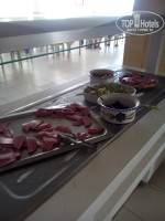 Питание- полный ужас. Фото прилагаются. Завтрак- скудный, вареное яйцо, багет, рис отварной, сырые не прожаренные блинчики, сух завтраков и сыра нет. Время завтрака с 7.00 до 10.00, приходишь в 9 утра поддоны из-под еды пустые, чайных ложек, чашек нет, посуда битая и грязная. Обед- пюре порошковое, аппарат с соками не всегда работает, из мясных блюд только кура, поранились рыбой в кляре костями, десерт практически отсутствует или не вкусный. Ужин- гриль горелый, вино разбавленное. Салфетки все в пятнах, столы скатерти не стираются, а просто стряхиваются на пол и переворачиваются другой стороной. Но это все оказывается было "хорошо". Когда через два дня отель заполнился, столовая (не ресторан) не рассчитанная на такое количество человек, подтвердилась нападению русских туристов. Вовремя не открывалась, они не успевали, закрывали дверь из ну три тумбой, фото прилагается.