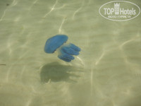 Когда нет волн, появляются медузы. Есть даже Крестовики - очень ядовитые, видел 2 раза, диаметром 4 см, похожи на водоросль. Когда рядом никого нет - видно как плывёт, когда подходишь поближе - замирает и щупальца расплываются, как будто комок водорослей.