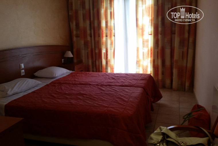 Всем здравствуйте. Отель Corfu Maris мы выбрали исключительно из-за его местоположения, посмотрев фото и почитав описание на этом сайте, просто влюбились в панораму... Ну а узнав, что в отеле ещё и пляж бесплатный, и за вид на море не придётся доплачивать - другие варианты уже просто не рассматривали. Потом, конечно, почитали здесь отзывы, но это уже скорее чтобы сориентироваться на местности и понять, куда пойти, куда податься. Тур покупали у Coral, вопросов к ним не возникло, всё четко, быстро и удобно. Летели из аэропорта Шереметьево, в отеле были около 10 утра и, респект отелю!, ключи от номера получили практически мгновенно. На рецепции ничего не заполняли, паспорта не отдавали, предъявили ваучер, получили ключи с пультами от техники и отправились разгружать вещи. Номер нам дали на 1-м этаже над рестораном, но никаких неудобств от этого мы не ощутили - ни запахов, ни особого шума... Может потому, что в номере только переодевались и ночевали - при закрытой балконной двери и включенном кондиционере мы слышали только шум кондиционера... Не могу также сказать, что близость проезжей части или заходящие на посадку самолёты как-то нас беспокоили или напрягали, но тут всё зависит, видимо, от индивидуальной чувствительности, если для вас это принципиально, то лучше выбирать отели на северо-восточном или западном побережье Корфу, но там свои нюансы, которые тоже могут кого-то не удовлетворить... Но это так, лирическое отступление, извините, отвлеклась. Номер небольшой, но аккуратный, чистенький и уютный. Индивидуальный кондиционер, в ванной - душевая кабина с герметичными дверцами, из туалетных принадлежностей, как уже писали, 2 кусочка мыла и туалетная бумага, но если вы забыли свой шампунь или гель, то в близлежащих магазинах можно оперативно и недорого всё это купить. Ежедневная уборка в номерах никаких нареканий не вызвала, постельное бельё меняли 2 раза в неделю, красиво раскладывали на кроватях простыни, полотенца меняли через день. Практически все сотрудники хорошо говорят по-русски, очень приветливые и внимательные люди, за что им большое спасибо.