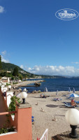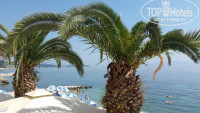 Море и пляж. Мелкая галька прямо под окнами отеля. Выходишь из отеля, берёшь зонт, выбираешь для себя место, расставляешь шезлонги и вуаля - наслаждайся! Огромное спасибо руководству и сотрудникам отеля за такой щедрый комплимент - обычно на европейских пляжах пользование зонтами и шезлонгами обходится недёшево. Пляжные полотенца в отеле тоже имеются, но вот они как раз за доплату, 1 полотенце стоит 1 евро, в основном, конечно, все привозят свои, но при форсмажорных обстоятельствах всегда можно воспользоваться. Море как слеза, когда спокойное, когда с рябью, пару раз волнение было внушительное, но это всё такие мелочи. Заход везде достаточно удобный, но нам показалось, что справа от большого камня, лежащего в воде, заходить удобнее всего. Кстати, случаются отливы - приливы.